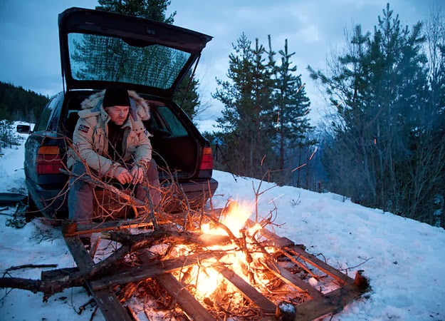 Si teneis unos 80 minutos libres para perder el tiempo os aconsejo ver Survivorman en Noruega .... Un autentico despliegue de malos consejos .Que van desde meterse nieve en la boca en un clima donde se llega a los -40º. Beber cerveza como metodo de alimentacion cuando el alcohol facilita la hipotermia. Aconseja beber orina con la urea toxica que eso significa y el alto contenido en sal que acelera la desidratacion. Hacerse unas botas de nieve con la espuma de los asientos de un coche " mi esponja de baño se empapa" sirve de bien poco si no es impermeable. Avandonar un fuego en una zona con mas de 70 cm de nieve sin nisiquiera intentar trasladarlo. Encender un segundo fuego utilizando las pocas cerillas de que dispone teniendo otro fuego a 5 metros. Comer restos de un cadaver exponiendose a contraer rabia transmitida por algun carroñero. Dejar un refugio seguro con 2 horas de luz sin saber a donde se dirige. Encender un hornillo para hacerse una infusion y apagarlo sin iniciar una fogata para pasar mas de 10 horas de noche.... subsanando eso con hacer flexiones para entrar en calor despues de 5 dias sin comer y un largo etc.............